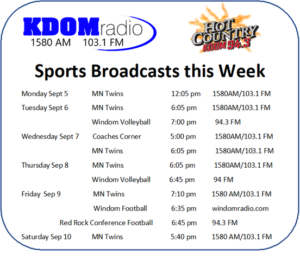 KDOM Broadcast Schedule week of 9-5 to 9-10